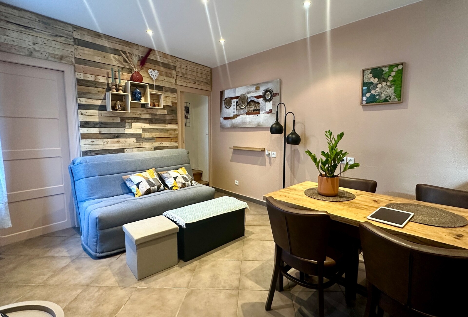 Une deuxième chambre en enfilade avec 2 lits 90 .