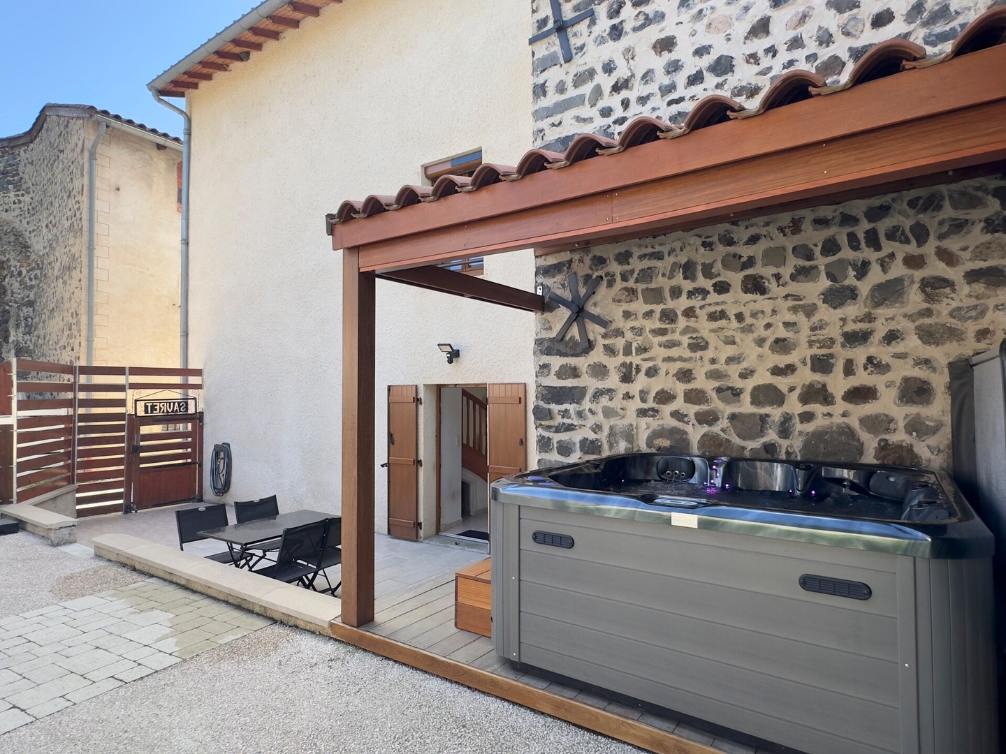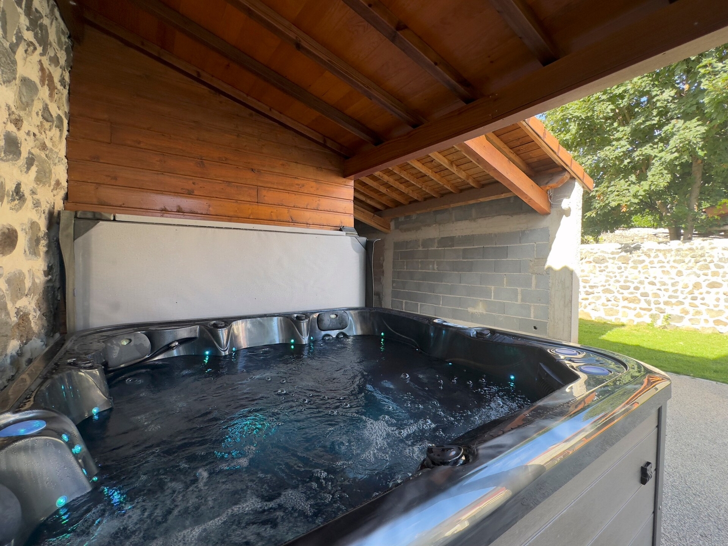 Que ce soit après une randonnée dans les paysages volcaniques du Velay ou simplement pour savourer une soirée entre amis sous les étoiles, ce jacuzzi deviendra sans aucun doute le cœur de votre séjour.