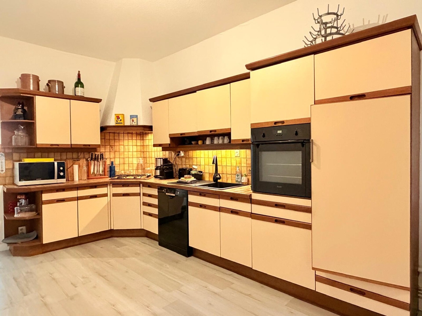 ✨ La **cuisine entièrement équipée** vous permettra de préparer vos repas facilement : four, plaques de cuisson, lave-vaisselle, machine à café et nombreux rangements sont à votre disposition.